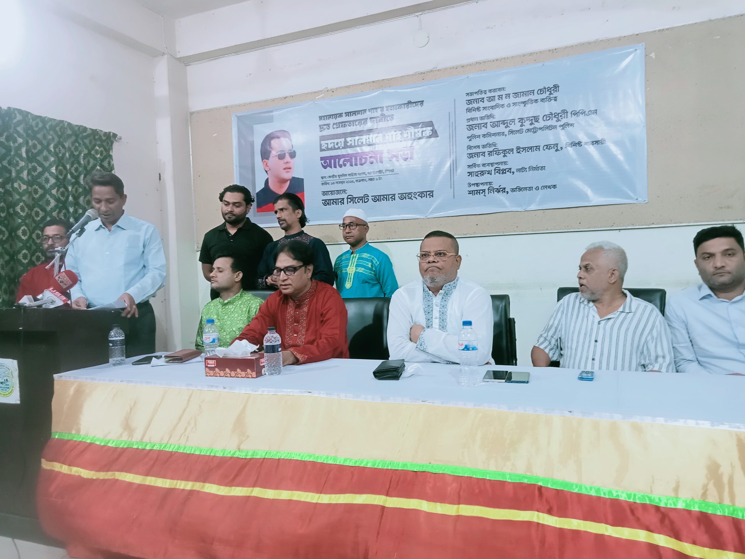 শুক্রবার সন্ধ্যায় সিলেটের কেন্দ্রীয় মুসলিম সাহিত্য সংসদে সামাজিক প্লাটফর্ম আমার সিলেট আমার অহংকার আয়োজন করে হৃদয়ে সালমান শাহ শীর্ষক আলোচনা সভার। বিশিষ্ট সাংবাদিক ও সাংস্কৃতিক ব্যক্তিত্ব আ ম ন জামান চৌধুরীর সভাপতিত্বে প্রধান অতিথির বক্তব্যে